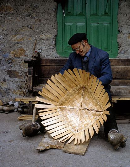 - Para que un cesto salga bien hay que cortar las varas en el mes de marzo, en menguante. Se dejan unos día para que suavicen. Eran muy abundantes, ahora ya no, porque nadie corta las varas y para que sirvan hay que cortarlas todos los años o se estropean; explica Magín mientras teje un cesto; pero no es lo mismo en la alta montaña, donde los tiempos, forzosamente, son diferentes, como bien cuenta Maribel Guerra, de Soto de Valdeón, mientras se afana con un cesto de patatas, el más utilizado en su tierra. «Aquí en Valdeón se recogían las mimbres en el mes de agosto (cuatro meses más tarde que en el llano), porque decían que era cuando más calidad tenían. Después se utilizaban los cestos para recoger las patatas, en octubre o noviembre, que era cuando se hacía esa faena en este valle».