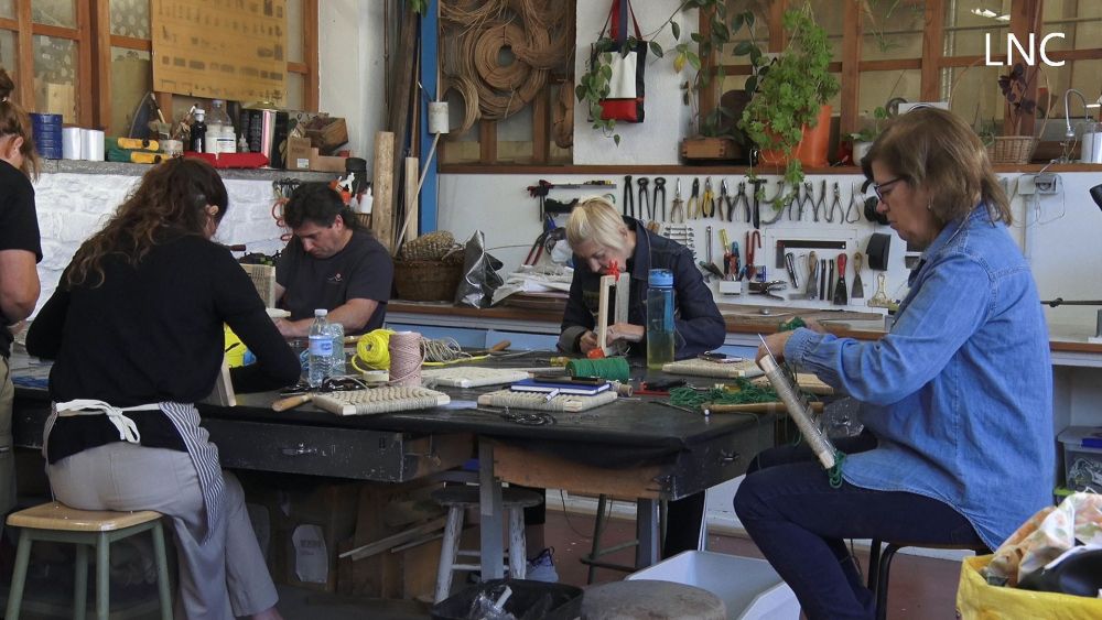 «Estamos haciendo encordados con diferentes materiales naturales», introduce Franco, que también imparte clases de tapicería tradicional: «Se trata de recuperar las técnicas que utilizaban antes nuestros abuelos y que se hacen también ahora, porque se ha puesto de moda el tema de los encordados». En sus palabras, «es una técnica que lleva mucho tiempo, aunque parezca que no» y que, además, dota a las pienzas de alta durabilidad. «Nos encontramos con sillas que pueden tener nuestros abuelos que ahora tienen cien años y se mantienen en buen estado», añade: «Incluso, dependiendo de dónde estén rotas, se podrían restaurar y así no hacerlas nuevas otra vez».