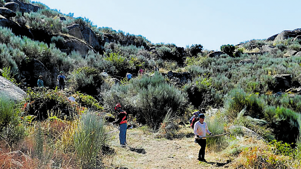 Promonumenta se desplazó el pasado sábado a Portugal. En colaboración con la sociedad portuguesa Ribacudana, ubicada en la comarca de Figueira de Castelo Rodrigo, llevó a cabo una hacendera de limpieza y desbroce en la senda ascendente de acceso a las ruinas del castillo de Monforte, situado en la cumbre de un monte, con una cota de 478 metros, en la margen derecha del río Côa, entre los límites de las localidades de Figueira de Castelo Rodrigo y Pinhel.
