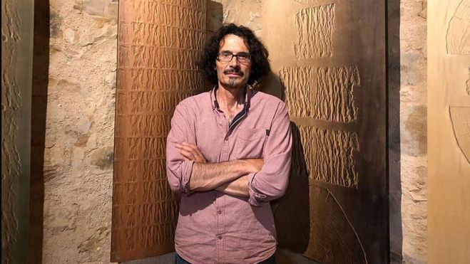 La primera de ellas nos recibe en la primera sala, subiendo la rústica escalera a mano derecha, donde la primitiva pared de cerramiento ha sido sustituida por una amplia pared de vidrio que nos permite una primera mirada a lo que nos espera dentro, en una sensación que combina amplitud y sorpresa al mismo tiempo. Se trata de la exposición titulada ‘Santocildes’, en la que José A. Alonso-Santocildes Sutil, polifacético artista afincado en Carrizo de la Ribera, nos ofrece una muestra de sus pinturas, grabados y esculturas que nos sumergen en un abrazo con los árboles, con lo que estos nos transmiten en todas sus dimensiones. Es la presencia de la naturaleza: en la impresión, pero también en la experimentación. Un reto entre el artista y la materia, que lleva a éste a ver hasta donde llega esa relación sin romper el equilibrio. Lo demuestra la pieza que ocupa el centro de la sala, ‘Cadena’ (realizada de un mismo tronco en una sola pieza, sin un solo engarce o añadido), lo demuestran los troncos de chopo o de roble, abiertos para mostrarnos cada uno su diferente textura, su fuerza, su esencia. Impresionante la belleza de ese paisaje gigantesco donde la breve hermosura del espino blanco, en plena floración apenas durante ocho días, parece haber quedado prendida para siempre y que atrapa nuestra mirada con todo el esplendor de la propia naturaleza. Son solo algunos de los ejemplos, porque cada una de las piezas allí expuestas, pintura, escultura o grabado, nos hablan de un artista que tras horas, días, años, en comunión perfecta con la naturaleza, ha logrado tal abrazo artístico con ella que no puede dejarnos impasibles.