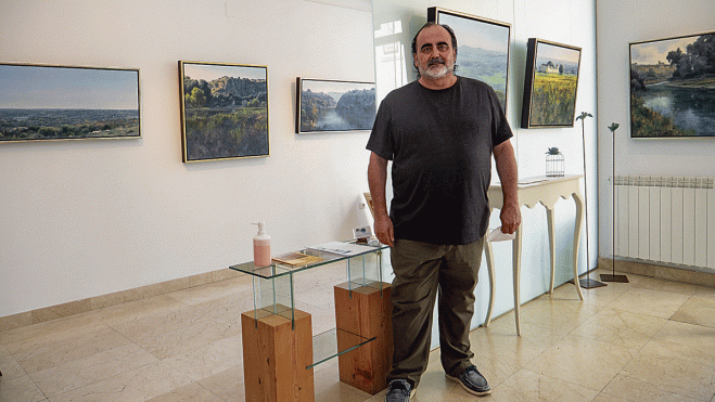 Al entrar en la galería de Arte Alemi y contemplar la exposición ‘El color de la atmósfera’, una colección de paisajes de este gran autor, el espectador puede comprobar cómo una mano maestra es capaz de plasmar diferentes lugares y momentos en el paisaje, y así verá desde amplios panoramas a montañas de roca cayendo sobre el cauce de un río, pueblos envueltos en la bruma de la mañana, marinas ibicencas con sus tendejones al borde del mar, enmarcado todo ello en unas composiciones donde se suceden los distintos planos con la fuerza de las montañas, los colores de la primavera y una amalgama de flores y color casi dentro de la abstracción que llevan la mirada de quien lo contempla hacia donde desea el autor.