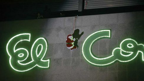 Papá Noel llegó a su fiesta y bajó por la fachada de El Corte Inglés