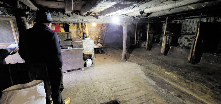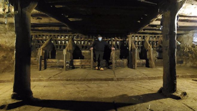 En la conversación con Nino es inevitable charlar de sus nueve hermanos de quienes habla con admiración como lo hace de sus 24 sobrinos. Él quedó soltero. «Si no se hacen las cosas cuando se tienen que hacer, después nada. Ahora para declaraciones solo estamos para la de la renta. Será que no me quisieron bastante», cuenta con sorna. En esa charla amena sale muchas veces el verbo pelear. «He pelado mucho», «peleé todo lo que pude», «y ahí estuvimos, peleando». Sus armas han sido siempre sus ganas de trabajar y el amor por los animales; pero eso no ha sido suficiente para las batallas propias de la vida, y del oficio. «La vida de ganadero es dura, ¿eh?», dice tras recordar las muchas noches que tenía que subir al monte para ver si la vaca que estaba pendiente de parir se ponía de parto. «Aquí a nada que te mueves es todo subir», dice ya con las madreñas calzadas mientras se acerca a uno de los establos en los que ordeñaba. «Tenía vacas de leche pero después aquello no era negocio. Vamos a ver. ¿Cómo podía ser que me pagaran la leche a 22 céntimos, más barata que el pienso?», lamenta. Mientras que Loba se queda vigilando la casa, Lobo no pierde de vista cada uno de los movimientos de su compañero de vida que muestra las pesebreras de madera pulida que tantas veces rellenó para dar de comer a su ganado. «Aquí ordeñaba, ¿ves?», dice en un cobertizo de techo bajo colmado de hierba en la parte superior. Nino tiene las cuadras inmaculadas y con todo bien ordenado. «Vienes aquí, está todo vacío, y... ¿Cómo no me va a dar pena», sostiene. Son quizá el lugar donde más tiempo ha pasado en estas últimas décadas de su vida y en ellas guarda hasta el primer tractor que tuvo su padre y que compraron «hará ya 45 años». «Cuando llegó esto... ¡Imagínate! Aunque a mí me tocó mucho segar a guadaña... Era duro. Había que pelearlo», recuerda Nino conjugando su verbo favorito. La conversación se detiene en lo mucho que ha cambiado el oficio de ganadero y en la amenaza del lobo en la zona. «Es un tema que preocupa y mucho», reconoce. Por las calles de Horcadas no anda ni el gato, pero unas cuantas chimeneas humean anunciando vida. «Mira, esta casa era un establo. ¿Y ves aquella? Otro. Y mira esta, aquí tenía el ganado mi abuelo», va contando Nino en un paseo en el que Lobo guía y la nieve acompaña, con el único sonido de las madreñas de Nino por las calles que durante el invierno transitarán «no más de 14 vecinos o así». El último ganadero de Horcadas no puede por menos que volver al calor en mitad del frío, al verano, al pueblo con niños. «Les enseño a ordeñar y no veas cómo se pone esto de chicos y lo que les gusta. Les mando ordeñar pero aprietan, aprietan y no les sale la leche», cuenta entre risas. Le van a echar de menos los pastos de La Prada, que ya no tendrán su visita nocturna, pero también los pequeños que con él han aprendido que la leche no mana de una fuente en la industria. Él también lo echará de menos. Lo dicen sus ojos vidriosos cuando recuerda ese momento en el que el camión se llevó las últimas vacas de Horcadas el 30 de diciembre. «Nada, se le saltan a uno las lágrimas... Porque mira que el ganado da disgustos y se enfada uno muchas veces con él pero...». Pero fue su vida, la que él eligió.Nino levanta la mano para despedirse y no entra en casa hasta que no ve desaparecer el coche. La niebla va bajando, se cuela por las calles hasta fundirse con el humo de las chimeneas y la nieve arrecia. Mientras recorremos el camino de vuelta bordeando el agua de Riaño es inevitable confirmar lo que todos nos habían anunciado: «Pues sí que es buen paisano Nino, sí».