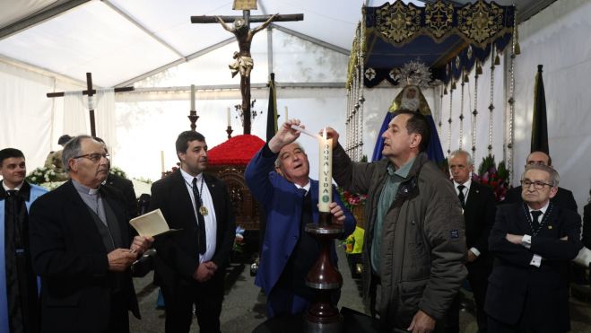 La cofradía del barrio de San Claudio enciende cada año un cirio a modo de ofrenda a los trasplantados y a los donantes. El acto, íntimo y sencillo, pone sobre la mesa la importancia que tiene el hecho de donar órganos. Manuel Ferrero Vidales y Jovino López García encendieron este año el cirio con el mensaje 'Dona Vida' grabado, a los sones de ‘La luz de la esperanza’ de su agrupación musical, que hoy acompañará a su titular en la procesión.