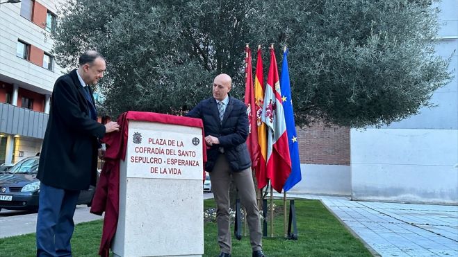 La Cofradía del Santo Sepulcro -Esperanza de la Vida, fundada en 1992, ya tiene su espacio en el callejero leonés. Tras haber sido la de las Siete Palabras la última en aparecer en el nomenclátor de la ciudad, en la tarde de este viernes, 20 de marzo, fue el turno de la penitencial del Sábado Santo.