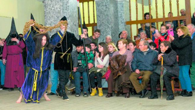Nada más terminar el acto de las Caídas, al no poder el Nazareno con el peso de la cruz, el judío busca entre el público a un cirineo que le alivie la carga. Así, cada Viernes Santo por la tarde, da comienzo en Almanza la procesión de los pasos, que va avanzando y deteniéndose al ritmo que marca la corneta. «Al terminar todo, ya vamos a tomar unas limonadas. A ‘matar judíos’, que ya bastante mal nos lo hace pasar antes», bromean estos treintañeros del pueblo.