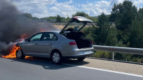 La densa columna de humo alertó a los conductores, de manera que el 1-1-2 recibió hasta 13 llamadas por este incendio. El humo dio paso a fuertes llamaradas, que amenazaban la parte delantera del vehículo.