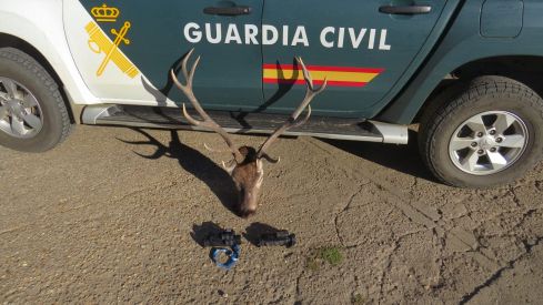 Se realiza vigilancia de la zona y se intercepta un vehículo circulando por un camino, inspeccionado el mismo se localiza en el maletero un arma de caza y una cabeza de ciervo macho sin precintar reglamentariamente, por lo que la misma fue intervenida. En las inmediaciones del lugar se encuentra el cuerpo del animal el cual había sido despiezado.