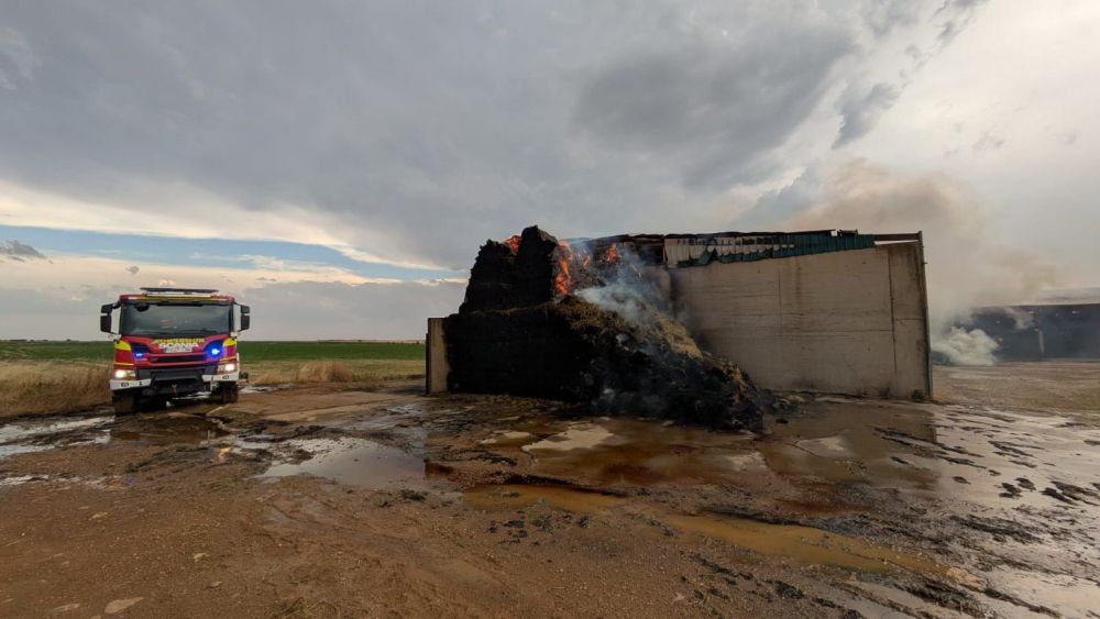 El Servicio de Prevención, Extinción de Incendios y Salvamento de la Diputación de León intervinieron en las últimas horas en un incendio registrado en una nave de paja ubicada en la localidad de Sahelices de Payuelos y para achicar agua en las calles de La Bañeza y Jiménez de Jamuz tras la intensa tormenta registrada en la zona.