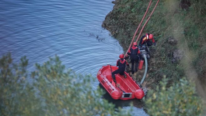 La Unidad Militar de Emergencias (UME) ha reiniciado este miércoles el vaciado de la balsa de la bocamina, ubicada en la localidad de Berbes, en Ribadesella (Asturias), con la expectativa de encontrar en este día dos coches sumergidos en el agua.