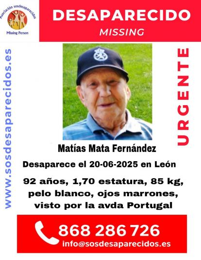 La Asociación SOS Desaparecidos ha lanzado este viernes una alerta en León tras perdérsele la pista a Matías Mata Fernández.