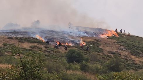 Un vecino, Ramón, de una familia de ganaderos, y tres jóvenes fueron los primeros que corrieron para ver si al estar ‘arrancando’ lo podían extinguir antes de que cogiera fuerza. Y lo lograron con una de ‘las lenguas’ pero iba creciendo otra a pocos metros, los móviles no funcionaban, y con el boca a boca se iban avisando. Sonaron las campanas y todos los que estaban en disposición de poder llegar al fuego y hacer algo marcharon para allá.