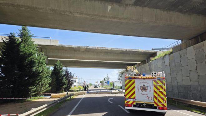 La A-66 sentido León y la N-122 se encuentran cortadas en Zamora tras la caída de parte de un muro de hormigón y la barandilla metálica de un puente, que no ha provocado daños personales.