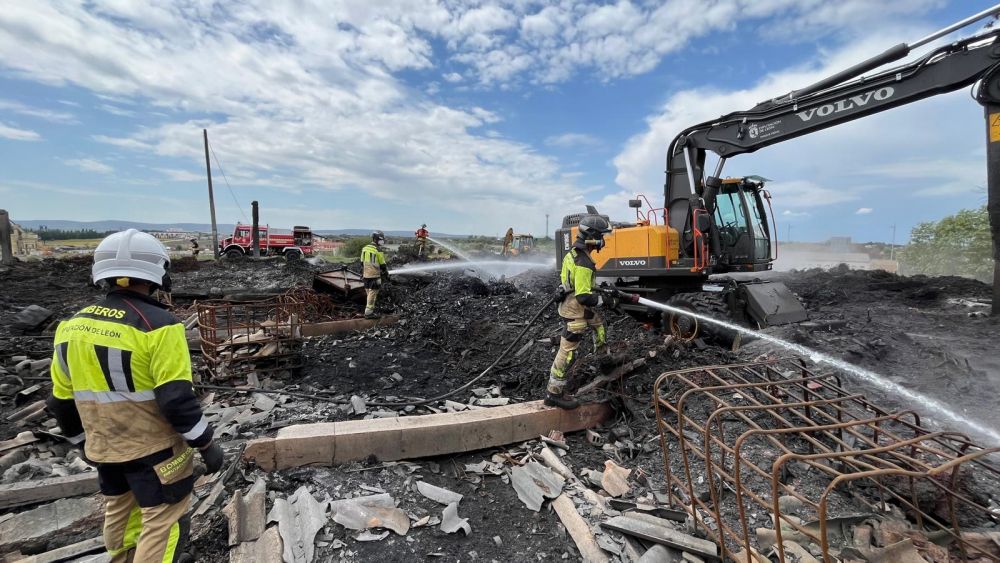 Tres dotaciones de bomberos del Servicio de Prevención, Extinción de Incendios y Salvamento (Sepeis) de la Diputación de León han concluido este lunes los trabajos de extinción del incendio originado el pasado 18 de marzo en una nave de plásticos de La Bañeza.