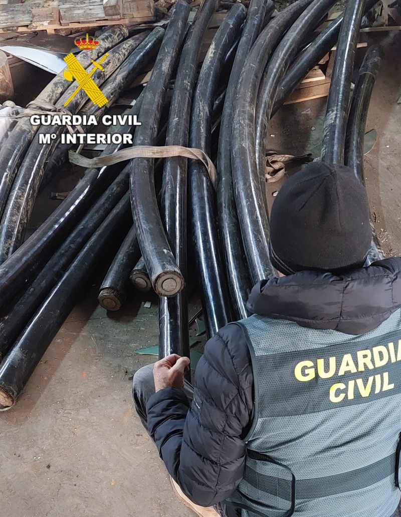 La investigación abierta y las inspecciones realizadas en chatarrerías del alfoz de León permitieron localizar parte de este material en dos de ellas y poner a disposición judicial un total de unos 800 kilogramos.