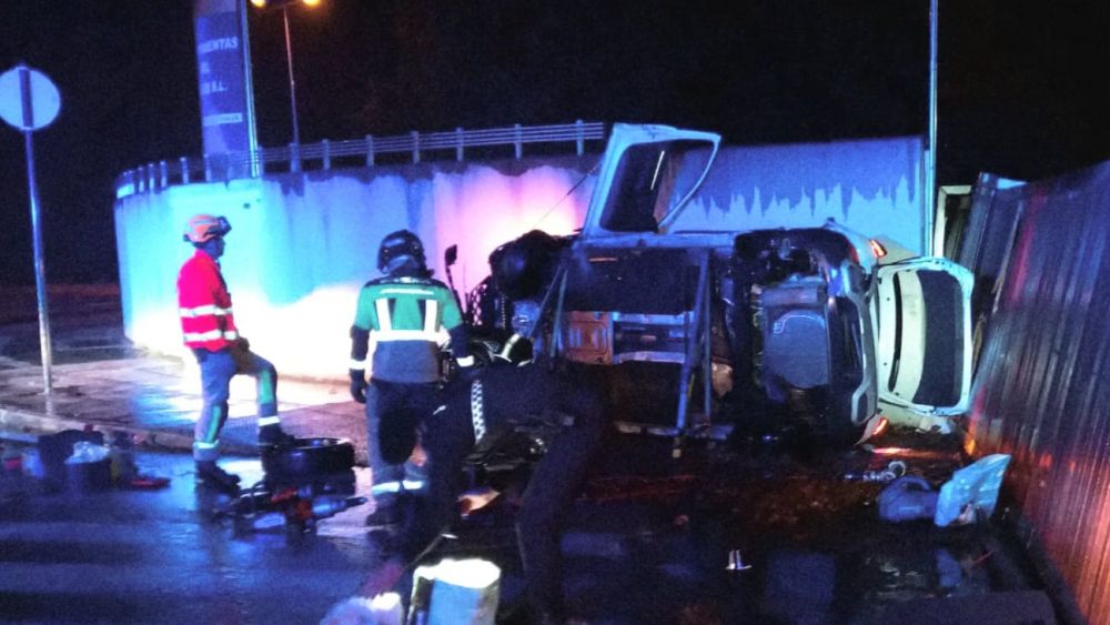 El vehículo, un Seat Arona, quedó volcado lateralmente, con el techo apoyado sobre el muro de cierre y la parte trasera muy próxima a un portón carretal, lo que dificultó las labores de rescate. La conductora permanecía consciente en el interior del turismo, aunque refería fuertes dolores en el pecho y no podía salir por sus propios medios.