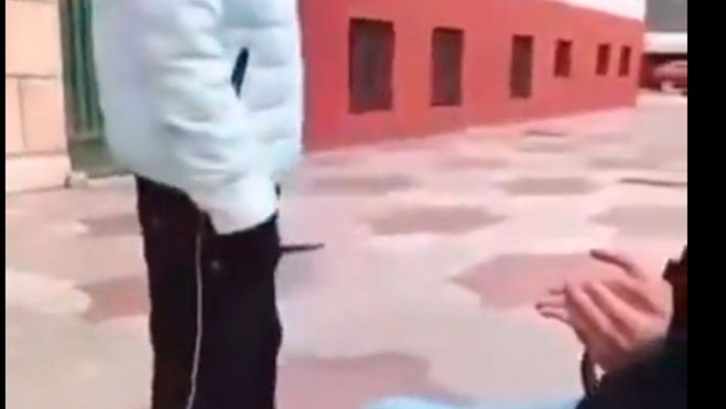 En las imágenes (que ya tienen centenares de miles de visualizaciones) se puede ver como, en diferentes puntos de la ciudad como el Paseo de la Condesa, frente al ambulatorio, saca una navaja y le amenaza obligándole incluso a ponerse de rodillas.